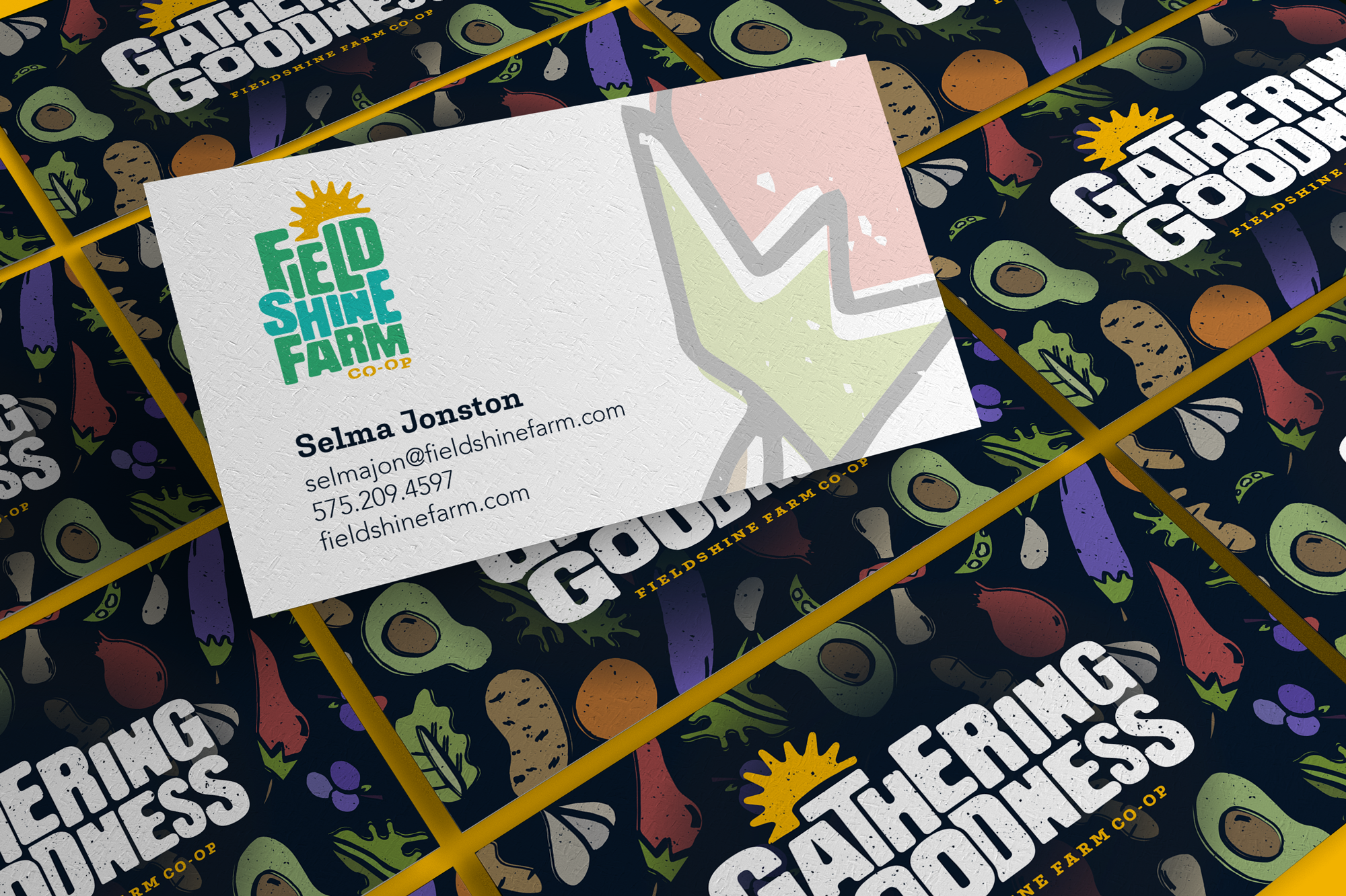 Fieldshine Farm Co-op is a creative exploration rooted in community, sustainability, and the beauty of locally grown food. The identity is entirely hand-drawn — from custom lettering to illustrated fruits and vegetables — capturing the imperfect, human quality of small-scale farming. The result is a brand that feels honest, approachable, and deeply connected to the land.