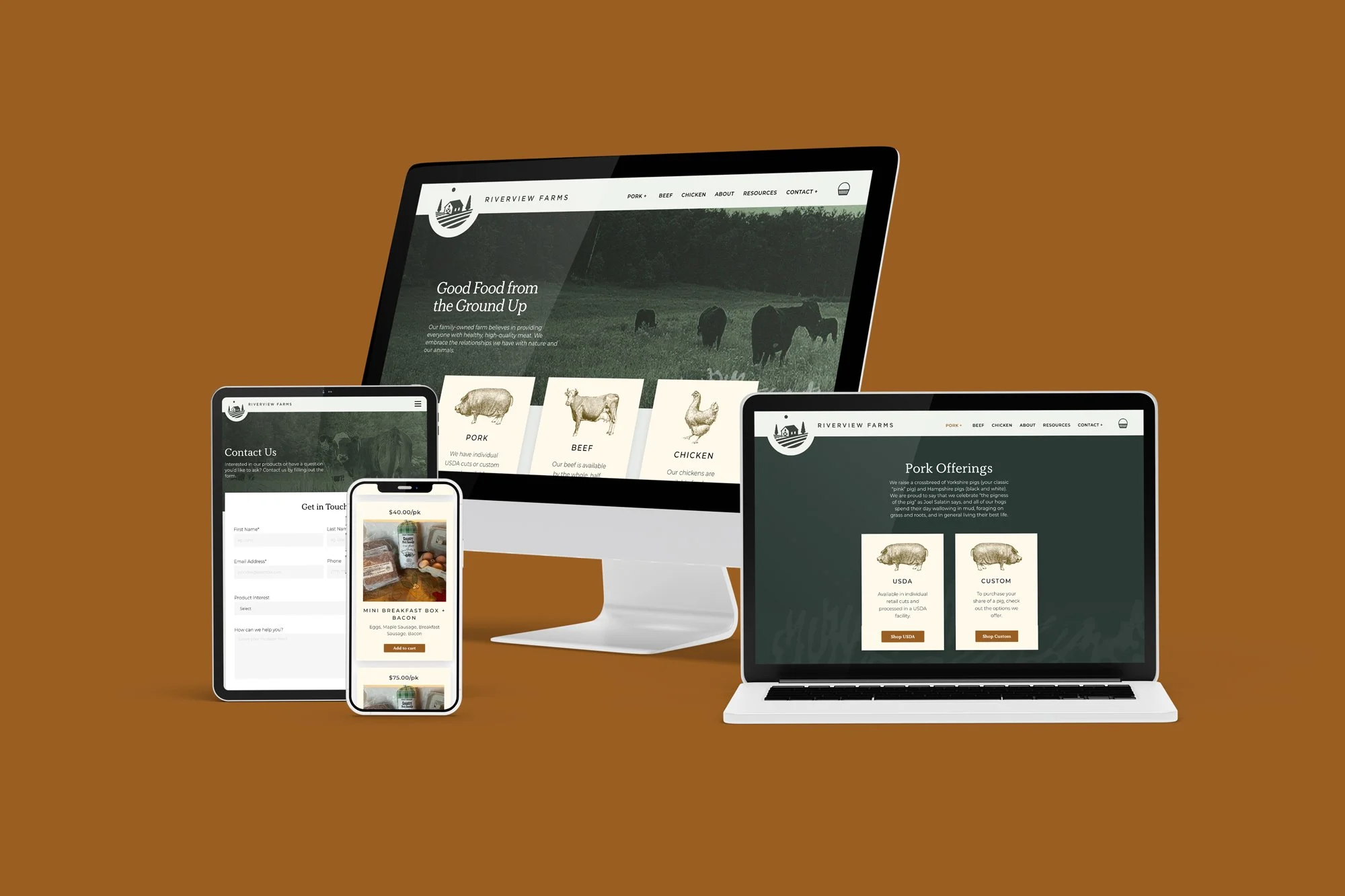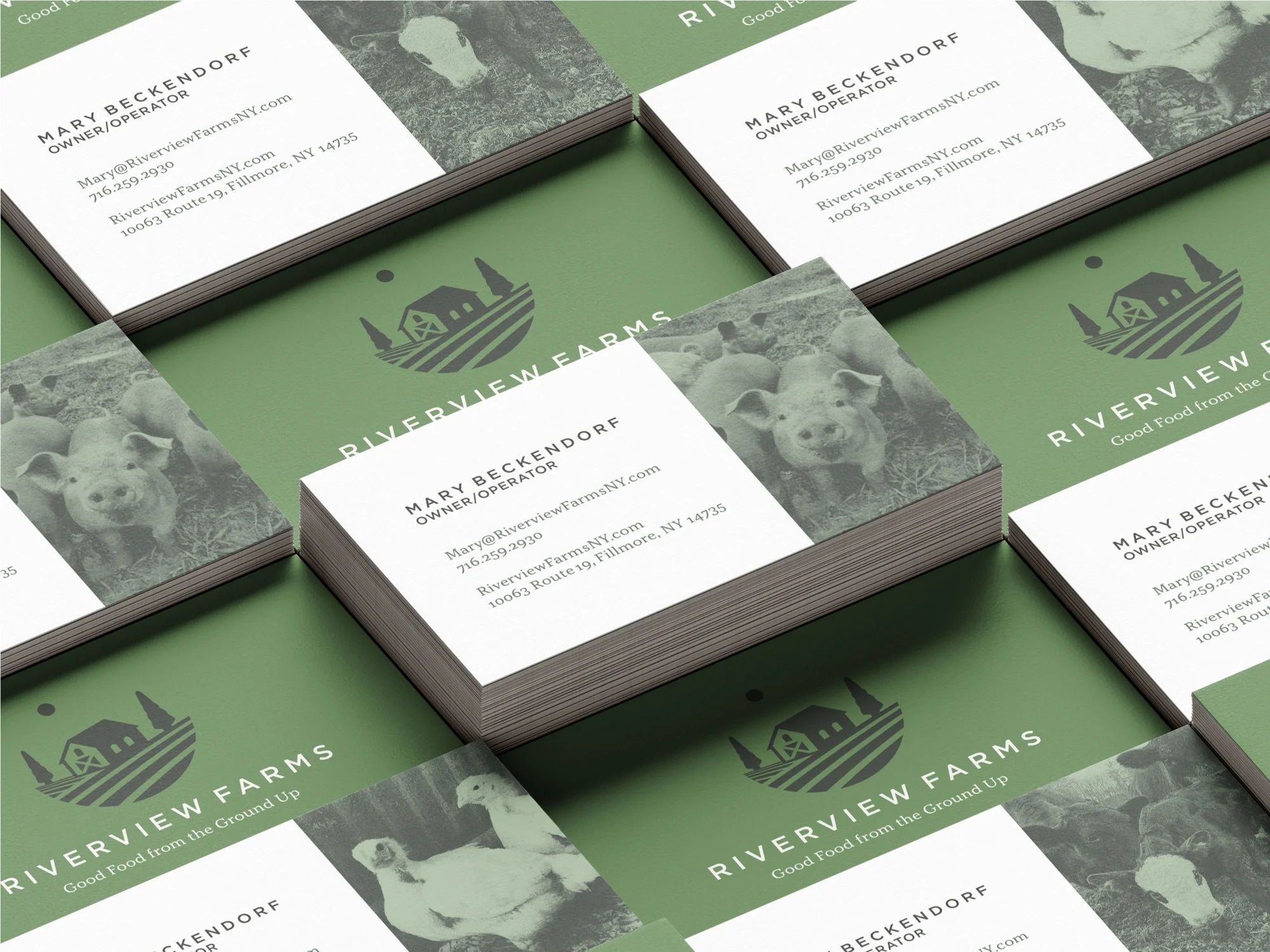Riverview Farms is a woman-owned farm located in Fillmore, NY. The owner is passionate about providing good, quality food to people of all income classes. It was important that the brand came across as welcoming, approachable, and “homey”. I was tasked with creating the brand, designing the website, creating and sourcing freezer-proof stickers, designing a vinyl freezer wrap, and several other print collateral pieces. Made during my time at Renoun Creative.